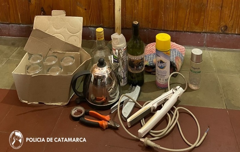 Tras realizar tareas de investigación, numerarios de esa dependencia policial se constituyeron en un descampado de la localidad de Banda de Lucero, donde recuperaron una pava eléctrica, una plancha para el cabello marca GAMA, una pinza, una abrochadora, cinco vasos de vidrio, un mantel, dos botellas con bebida alcohólica y elementos de limpieza.