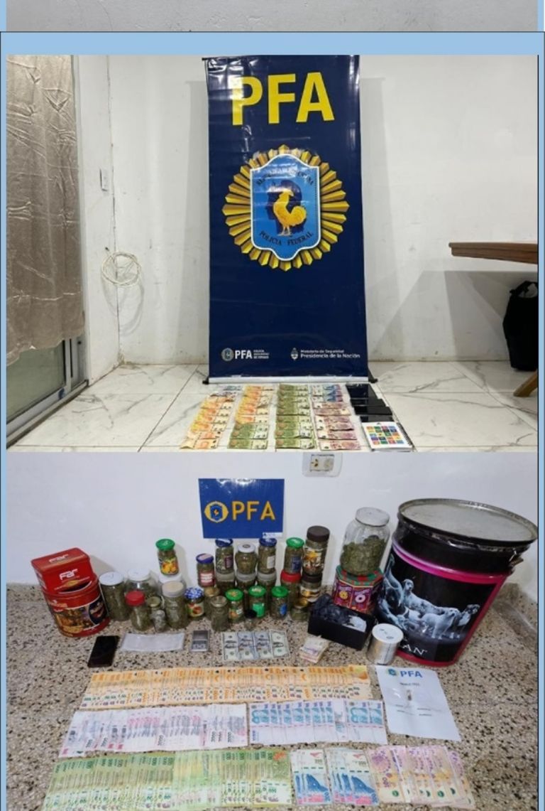 Los detenidos junto a los elementos secuestrados quedaron a disposición del magistrado interventor por infracción a la Ley de Drogas.