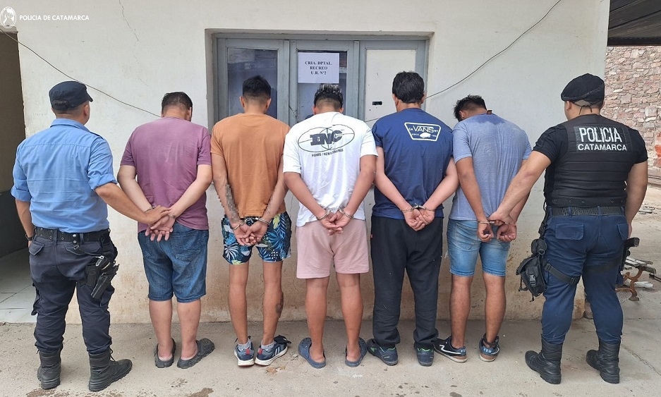 También procedieron al arresto en averiguación del hecho de los presuntos autores cinco sujetos de apellidos Giménez (18), Gómez (28), Banegas (32), Canelo (45) y Banegas (59), quienes fueron alojados en la seccional a disposición de la Justicia interviniste.