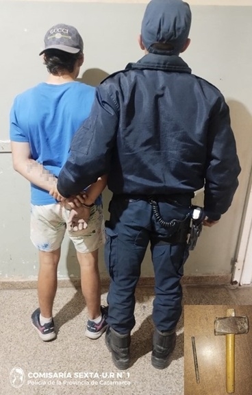 Sin embargo, y con los datos aportados, en la intersección de la Peatonal N°20 y calle Diagonal 6, los policías procedieron a la aprehensión del presunto autor de apellido Segura (20) y al secuestro de una maza y un trozo de hierro que tenía en su poder, por lo que finalmente el joven fue trasladado a la seccional, donde quedó alojado a disposición de la Fiscalía en turno del Distrito Oeste, desde donde se indicaron las directivas a seguir.