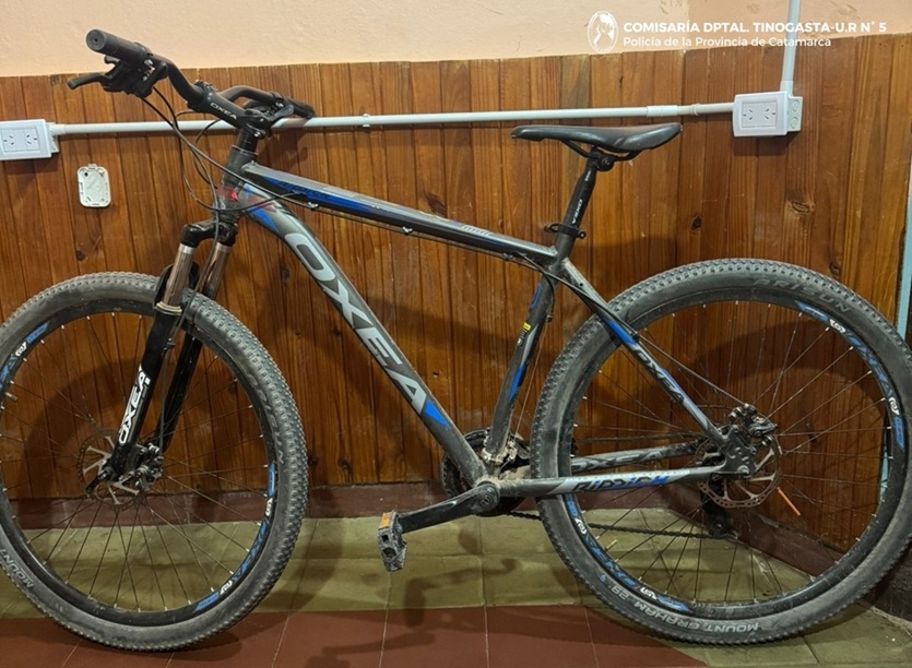 Hoy, a las 05:40, alertado por un llamado telefónico, personal de la Comisaría de Tinogasta se constituyó en calle Catamarca, inmediaciones a la cancha del Club Quilmes de esa Ciudad donde recuperó una bicicleta marca OXEA, rodado 29, de colores gris y azul, que fue denunciada por un hombre mayor de edad, como sustraída, en virtud de lo cual quedó en calidad de secuestro a disposición de la Fiscalía de la Quinta Circunscripción Judicial.