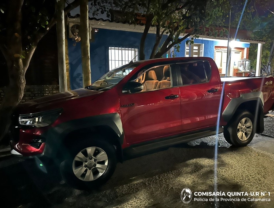 A las 02:15 de la madrugada de hoy, personal de la Comisaría Quinta, mientras realizaba recorridos preventivos por el Antiguo Camino a El Rodeo, procedió al secuestro de una camioneta Toyota Hilux de color rojo, conducida por un joven de 27 años.