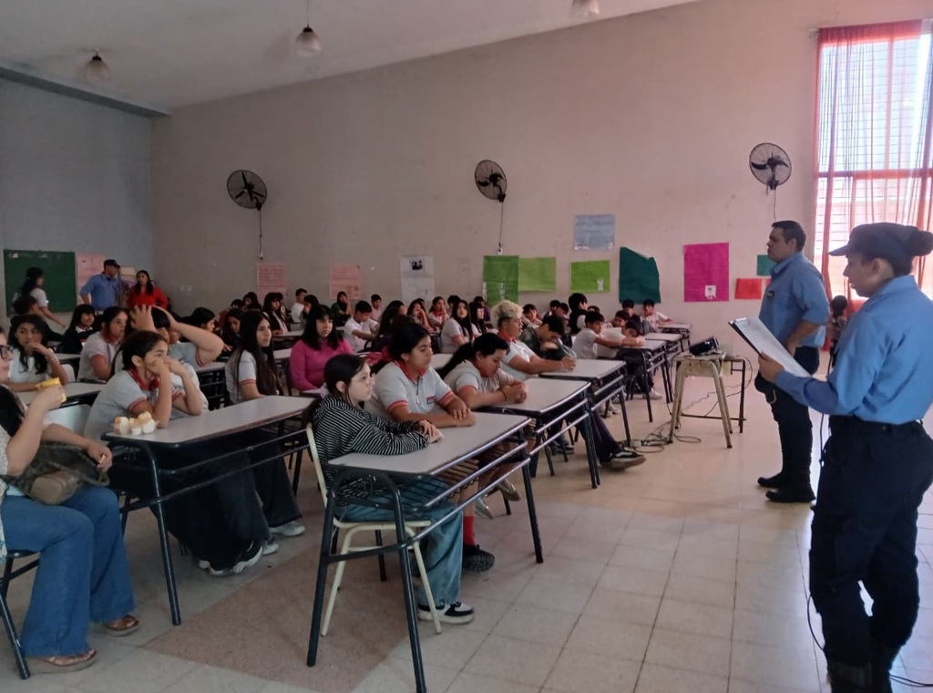 La capacitación, que fue dirigida a alumnos, padres, docentes y directivos del establecimiento escolar, estuvo a cargo del Comisario Lic. José Feliciano Mansilla, del Oficial Subinspector Gabriel Silva y de la Oficial Ayudante Brenda Castro, quienes abordaron temas relacionados con concepto, los tipos y las características del bullying, ofreciendo además consejos prácticos para detectar y prevenir situaciones de violencia escolar.