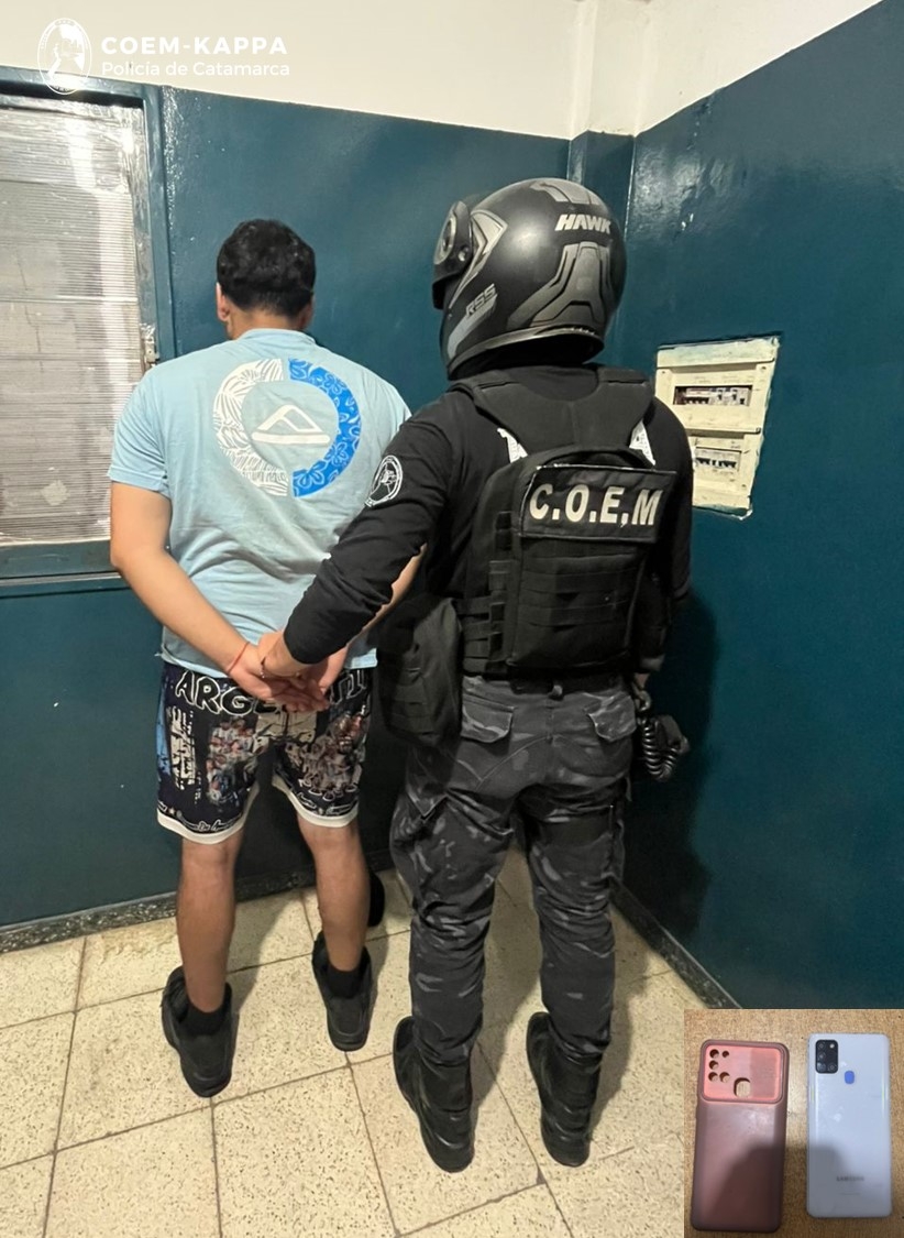 Durante la intervención, el joven de apellido Córdoba (20) fue aprehendido, y la motocicleta secuestrada. Además, al realizarle un palpado superficial, los policías encontraron un teléfono celular Samsung con funda rosada, cuya procedencia y propiedad no pudo acreditar, por lo que también fue incautado.
