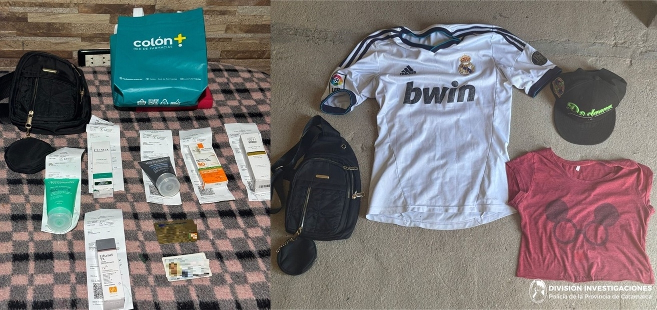 En el inmueble, el personal policial interviniente recuperó una tarjeta de crédito y un Documento Nacional de Identidad, que quedaron en calidad de secuestro al igual que prendas de vestir que los supuestos autores del delito habrían utilizado al momento de perpetrar el hecho, y distintos productos que tendrían relación con la causa que se investiga.
