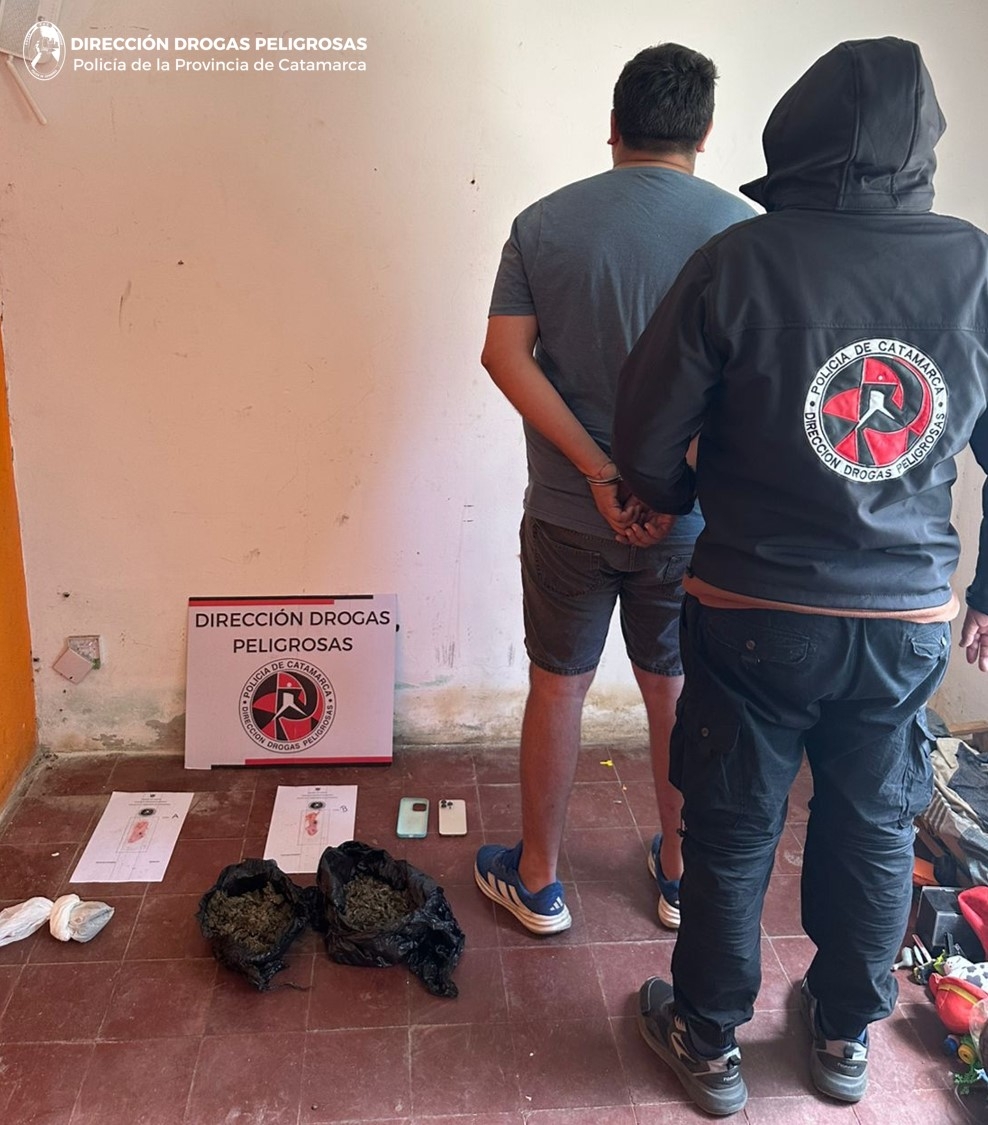 Durante la mañana de hoy, tras realizar tareas investigativas y bajo las directivas del Juzgado Federal, efectivos de la Dirección Drogas Peligrosas de la Policía de la Provincia materializaron dos allanamientos en domicilios ubicados en calle La Rioja al 700, de esta Ciudad Capital, y en el pasaje Monseñor Oviedo S/N° de la localidad de San Isidro, Departamento Valle Viejo.