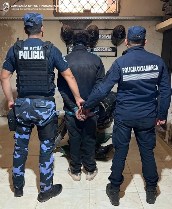 Tras llevar a cabo tareas investigativas, ayer en calle Tucumán, entre Hipólito Yrigoyen y Alberto Ruchelli, efectivos de la Comisaría Departamental y del Grupo Infantería de Tinogasta observaron a un sujeto a bordo del rodado mencionado, y éste, al notar la presencia de la unidad móvil, se dio a la fuga, para luego ingresar a un inmueble de la zona.