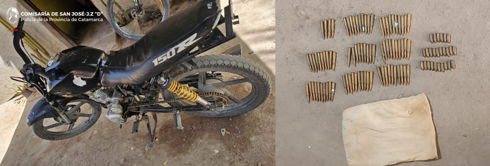 En la jornada de ayer, a raíz de una denuncia penal radicada por un hombre mayor de edad, en la que manifestó que personas desconocidas le habrían sustraído una motocicleta tipo 150 cc., de color negro, tras averiguaciones practicadas, bajo las directivas del Juzgado de Control de Garantías de la Cuarta Circunscripción Judicial, a cargo del Dr. José Luis Navarro, y a solicitud de la Fiscalía de esa jurisdicción, efectivos de la Comisaría de San José, conjuntamente con sus pares del Grupo Infantería, personal de calle y de la División Criminalística, materializaron un allanamiento en una vivienda ubicada en la Ruta Nacional N° 40, de la localidad de Palo Seco, Departamento Santa María.