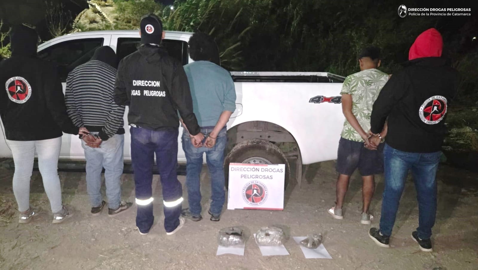 Anoche, a las 20:30, luego de arduas tareas investigativas, personal de la División Inteligencia, dependiente de la Dirección Drogas Peligrosas de la Policía de la Provincia, llegó hasta el Río del Valle, a la altura del puente de la avenida Juan Chelemín, donde identificó a tres sujetos de 30, 32 y 34 años de edad.