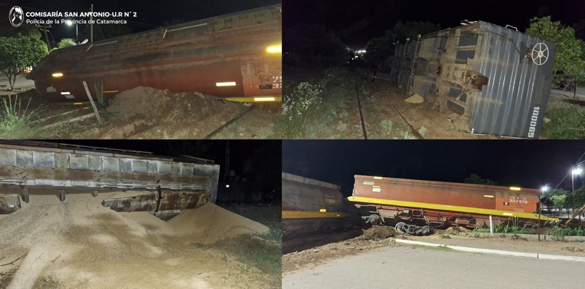 Anoche, a las 23:40, alertados por un llamado telefónico, numerarios de la Comisaría de San Antonio, departamento La Paz, llegaron hasta una calle Pública S/N°, a la altura del paso nivel Sur, donde se produjo el descarrilamiento de una formación de tren.