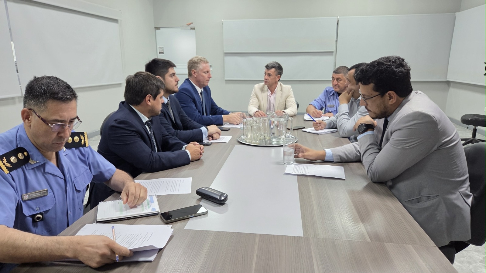 El fiscal general, Alejandro Gober, junto a los fiscales de instrucción, Laureano Palacios, Jorge Palacios y Juan Manuel Sánchez Ruiz, mantuvieron una reunión de trabajo con el secretario de Seguridad y Orden Público, Martín Miranda, y autoridades de la Policía de la Provincia, con el objetivo de coordinar acciones para abordar de manera integral los hechos protagonizados por grupos de motociclistas que generan disturbios y situaciones de riesgo en la vía pública.