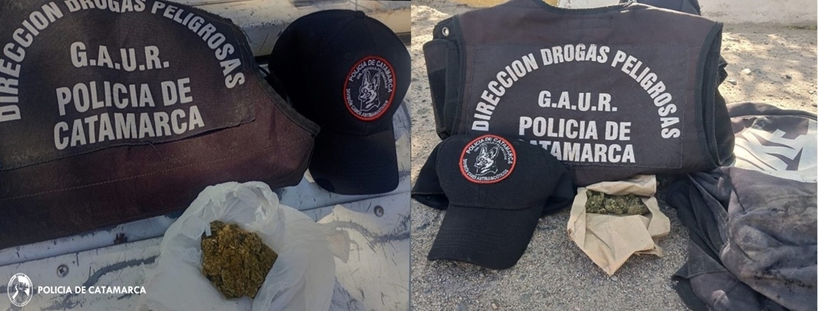 Asimismo, en el empalme de las rutas provinciales N° 137 y N° 223, de la localidad de la Puerta de Corral Quemado, los policías inspeccionaron a una motocicleta tipo 150 cc., de color azul, conducida por un sujeto de 26 años, a quien al momento de identificarlo y tras una inspección, el perro “Lobo” realizó una marcación en una mochila que tenía en su poder, y los efectivos incautaron una bolsa de papel con la misma sustancia estupefaciente mencionada.