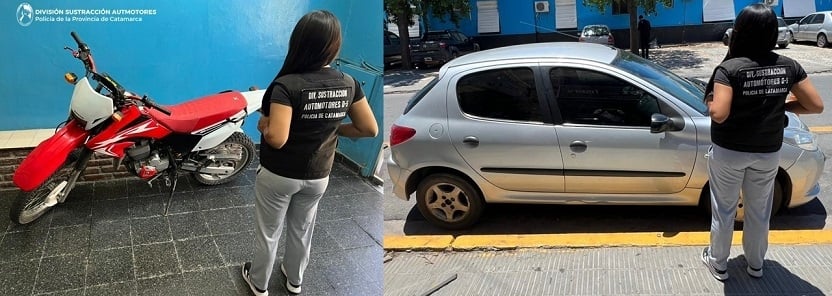 Hoy, tras realizar tareas de su especialidad, numerarios de la División Sustracción de Automotores de la Policía de la Provincia llegaron hasta la intersección de las avenidas Belgrano y Alem, donde secuestraron una motocicleta Honda Tornado XR 250 cc., de colores rojo y blanco, como así también hicieron lo propio con un Peugeot 207 Compac gris.