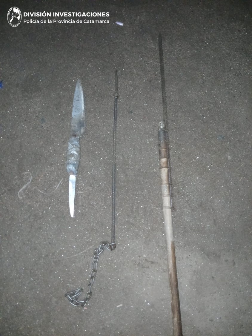 Los procedimientos se concretaron en viviendas del barrio Los Plateados Oeste, en la localidad de Sumalao, por requerimiento de la Fiscalía de Instrucción N° 7 y bajo orden del Juzgado de Control de Garantías N° 2. Durante las medidas, los efectivos incautaron una cuchilla de doble hoja, un palo de escoba con una punta de hierro, una punta de hierro con una cadena soldada y una colcha con manchas rojizas, que presumiblemente serían de sangre humana.
