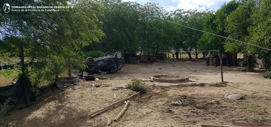 Hoy, a las 07:50, en Ruta Provincial N° 30, a la altura del paraje El Talarcito, Departamento Santa Rosa, Michel Sebastián Orellana (39), que circulaba en un Toyota Yaris, junto a Valentina Azul Cisterna (20) y un adolescente de 17 años, perdió el control del rodado y terminó volcando, deteniendo su marcha el vehículo en el interior de una vivienda de la zona.