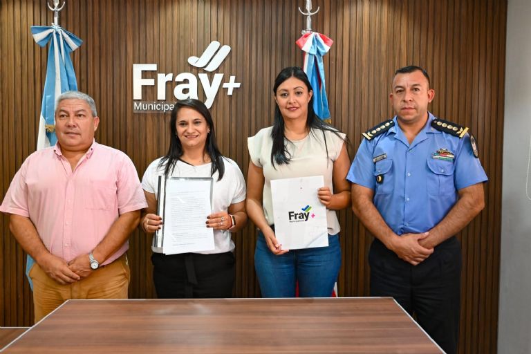 Con el propósito de fortalecer y optimizar el manejo de las herramientas de vigilancia e integración de datos para proteger a nuestra comunidad, la ministra de Seguridad, Dra. Fabiola Segura suscribió hoy importante convenio con la intendenta de Fray M. Esquiú, Alejandra Benavidez y el Jefe de Policía, Crío. Gral. Walter Quiroga