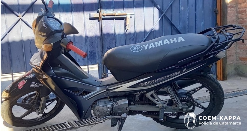 Hoy, a las 12:40, mientras Motoristas del COEM Kappa realizaban recorridos de prevención, en la esquina de avenida Belgrano y calle Sarmiento observaron a dos sujetos a bordo de una motocicleta Yamaha Crypton 110 cc., de color negro, realizando maniobras peligrosas.