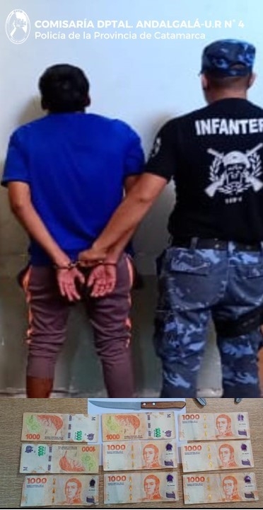 Con los datos aportados y tras un amplio recorrido, los policías aprehendieron a un hombre de apellido Flores (31), quien sería el presunto autor del hecho, y además secuestraron un cuchillo tipo Tramontina y la totalidad del dinero sustraído, por lo que fue trasladado a la dependencia policial a disposición de la Fiscalía de la Segunda Circunscripción Judicial, desde donde se indicaron las directivas a seguir, y se invitó a la damnificada a radicar la denuncia penal correspondiente.