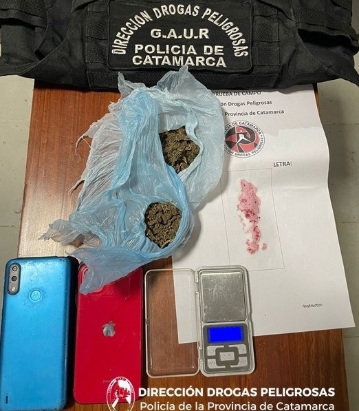 Durante el procedimiento, los policías lograron incautar dos envoltorios de plástico que en su interior contenían una sustancia tipo herbácea compuesta por hojas, tallos y semillas, acusando un peso de 40,4 gramos, determinando luego con la prueba de campo que se trataba de marihuana, en la variedad conocida como Cripy, dos teléfonos celulares, marcas IPhone y Motorola y una balanza digital tipo gramera.