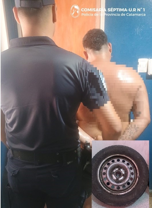 Ante el arribo de los uniformados, el sujeto intentó darse a la fuga y, con la colaboración de personal del GIR Norte, los Policías lograron aprehender al hombre de apellido Pedraza (32), y secuestrar la rueda.