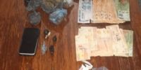 En un domicilio ubicado en el Barrio 30 Viviendas, de la Ciudad de Santa Maria, los investigadores secuestraron 150,4 Gr. de Marihuana, fraccionada en envoltorios de plástico, dos cigarrillos de armado casero con la misma sustancia, un teléfono celular marca Samsung, un picador de metal, y 17 recortes de plástico de diferentes tamaños y colores.