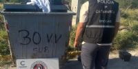 En la madrugada de hoy, alertados por un llamado telefónico, numerarios de la Seccional Décima Primera llegaron hasta la avenida Del Bicentenario, inmediaciones al Loteo Parque Sur, donde un Cabo Primero de Policía manifestó que mientras se encontraba de franco, al dirigirse a arrojar basura, en el interior de un contenedor de residuos de la zona divisó una bolsa plástica que contenía paquetes compactados de dudosa procedencia.
