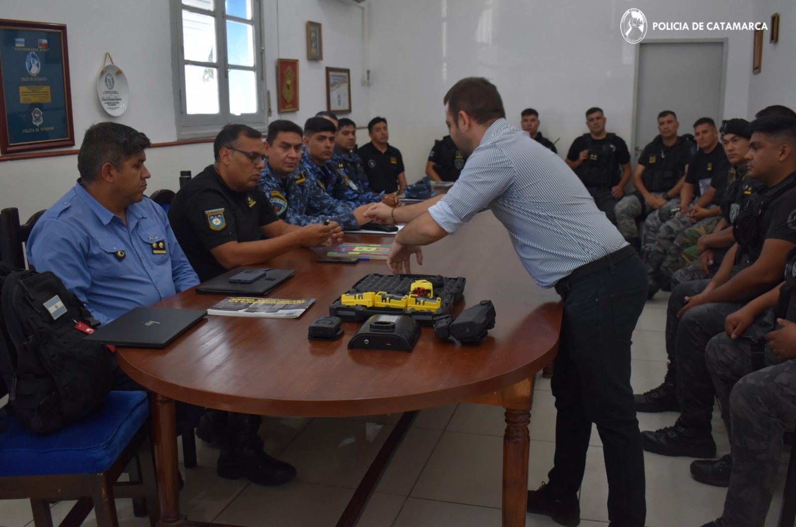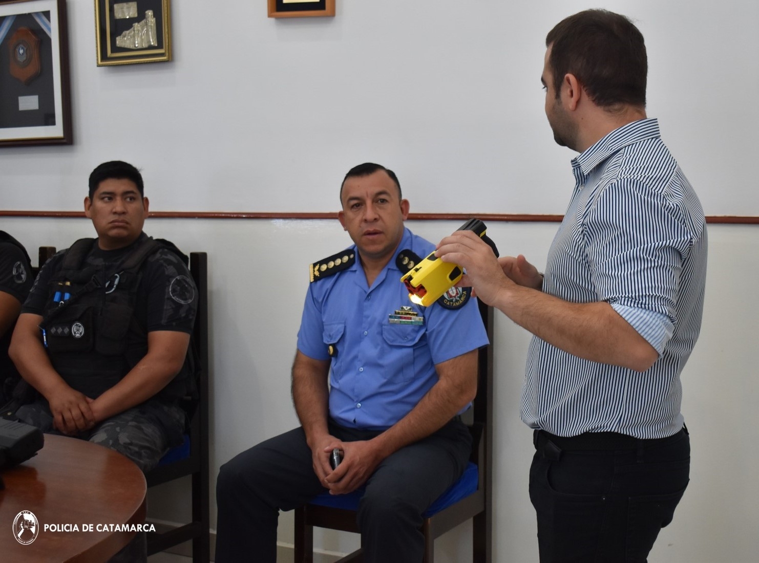 En la presentación, el Gerente Comercial de TASER, Juan Cruz Dávila Sierra, explicó las características de estos dispositivos, que son importantes para el personal policial al momento de repeler y controlar agresiones, donde también expuso la nomenclatura, modo de uso, características y efectos, y la experiencia de las diferentes fuerzas policiales del país que ya hacen uso de esta herramienta de trabajo.