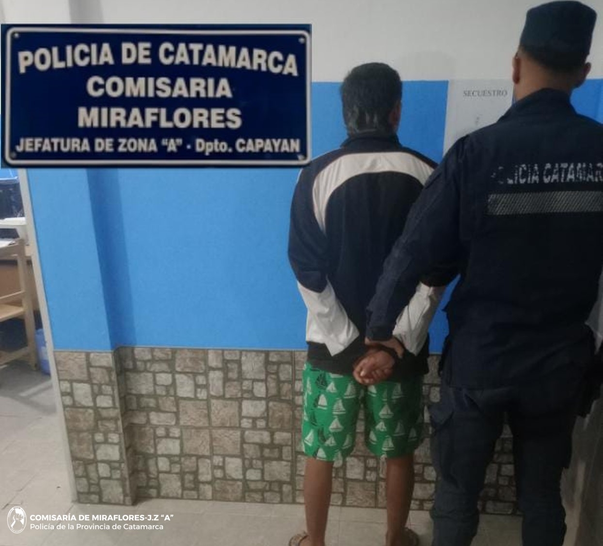 Arresto en Capayán Ayer, a las 19:00, personal de la Comisaría de Miraflores, en el Departamento Capayán, arrestó a un joven de apellido Regule, de 24 años, quien fue señalado por un hombre mayor de edad como el presunto autor de un ilícito en su perjuicio. Durante el procedimiento, los efectivos lograron recuperar elementos relacionados con el hecho, los cuales quedaron en calidad de secuestro. El sujeto fue trasladado a la seccional y quedó a disposición de la Fiscalía de Instrucción del Distrito Sur.