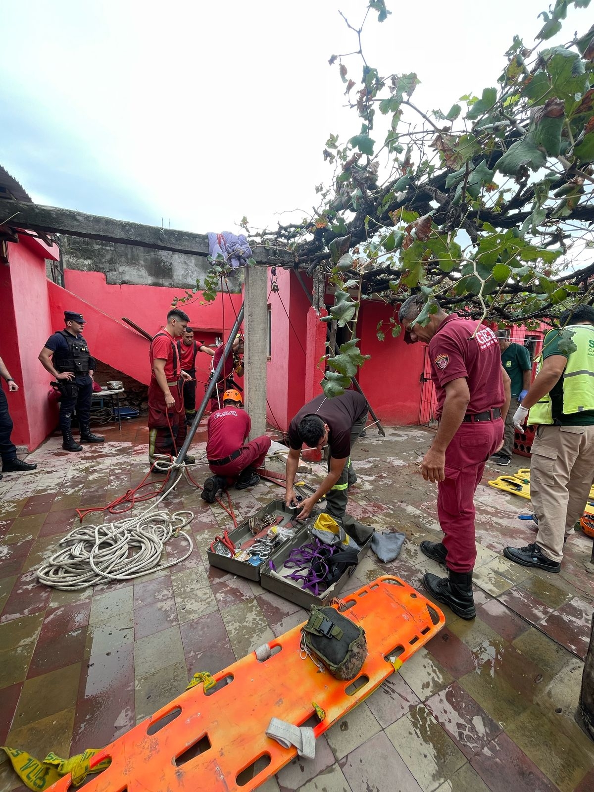 Ante la gravedad de la situación, se solicitó la presencia urgente del SAME y del Grupo Especial de Rescate (GER). El primer en llegar fue el móvil 22, a cargo del Dr. Chanampa, quien asistió en el lugar mientras aguardaba al equipo especializado.