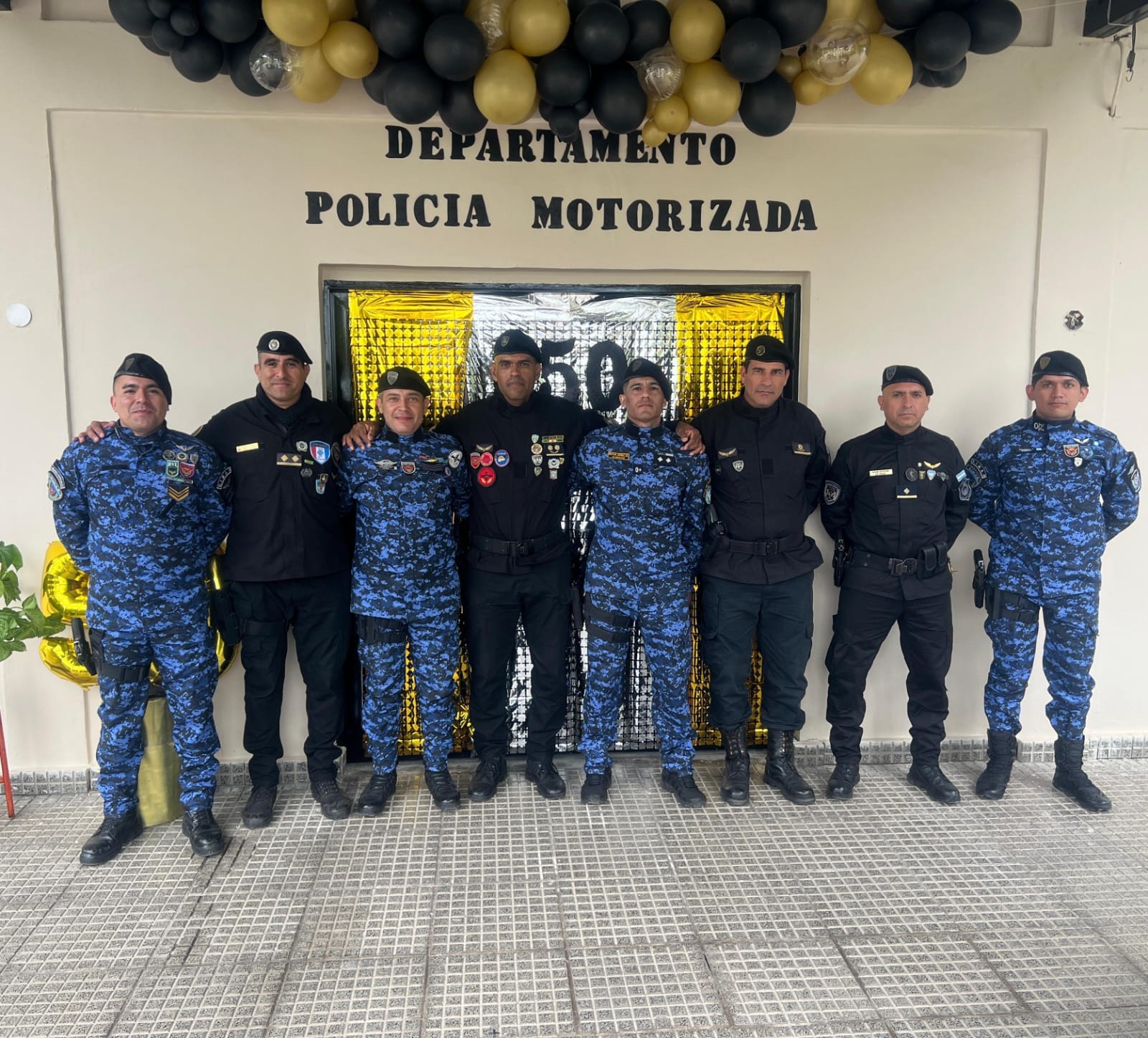 Motoristas del Grupo de Infantería Motorizada de Acción Rápida (GIMAR), dependientes de la Dirección de Unidades Especiales, participaron del acto por el 50° aniversario del Departamento de Policía Motorizada “Cabo 1° Pérez”, en la provincia de La Rioja.