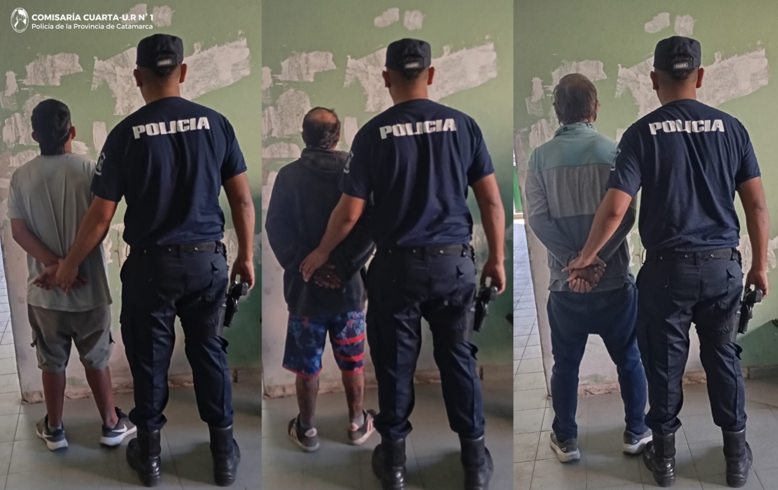 A las 16:10 de la tarde de hoy, alertado por un llamado telefónico, personal de la Seccional Cuarta se hizo presente en la plaza Virgen del Valle, ubicada en la intersección de las calles Junín y Perú, donde arrestó a tres sujetos de apellidos Sánchez (21), Almeida (41) y Fernández (49), quienes habrían causado un desorden en el lugar y al solicitarles que desistan de su accionar, se tornaron agresivos con los uniformados vociferando insultos.