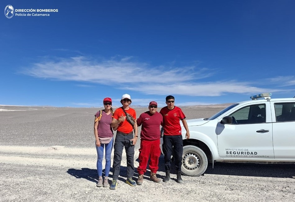 La búsqueda fue encabezada por el Grupo Especial de Rescate (GER) de la Dirección Bomberos de la Policía de la Provincia, quienes desplegaron un operativo intensivo por la zona hasta lograr localizar a los visitantes en una zona alejada del sendero principal.