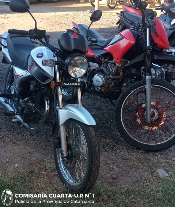 Los rodados secuestrados son una Gilera VC y una Corven Triax, ambas de 150 cc. Tras labrarse las actas correspondientes, fueron remitidos a la dependencia policial.