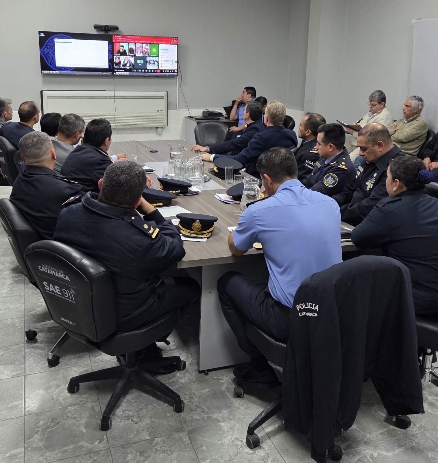 La reunión contó además con la participación de los jefes de las distintas Unidades Regionales: Unidad Regional N° 1: Crio. My. Alejandro Marinero Unidad Regional N° 2: Crio. My. Manuel Rodolfo Verón Unidad Regional N° 3: Crio. Insp. Diego Ponce Nieto Unidad Regional N° 4: Crio. My. Lic. Hernán Fermín González Unidad Regional N° 5: Crio. My. Juan Carlos Aramburu.