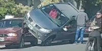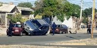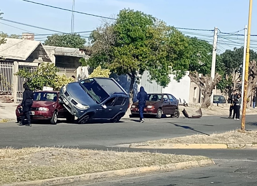 Un siniestro vial se registró hoy en horas de la mañana en avenida Manuel Navarro al 2200, donde por causas que se investigan, colisionaron dos automóviles, y uno de ellos quedó sobre el otro.