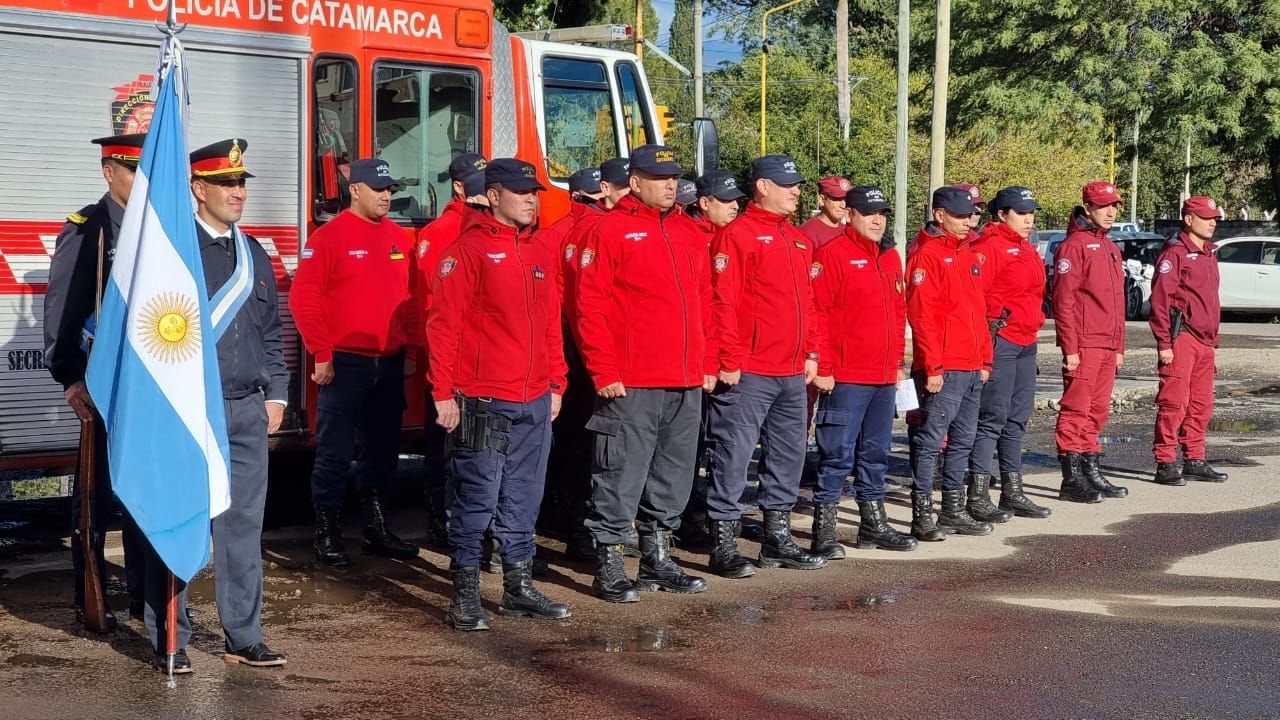 La Ceremonia, fue presidida por el Jefe de Policía, Crio. Gral. (RE) Marcos Manuel Herrera, acompañado por el Subjefe de Policía, Crio. Gral. Lic. Omar Gustavo Seiler, el Director de Bomberos, Crio. My. Lic. Diego Saúl Cerkvenih, el Jefe de la División Bomberos de la Superintendencia de la Policía Federal Argentina con asiento en el Aeropuerto Felipe Varela, Crio. Hernán Paoli, integrantes de la Plana Mayor Policial, representantes de Bomberos Voluntarios de Capital, Valle Viejo, Fray Mamerto Esquiú y Chumbicha, personal de la Brigada de Incendios Forestales y público en general.