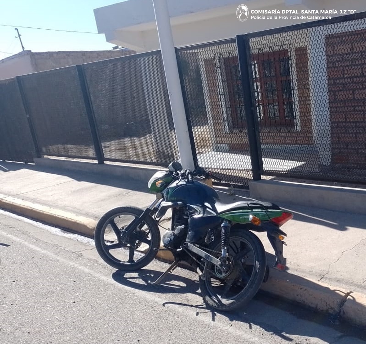En la mañana de hoy, a las 11:50, luego de tomar conocimiento de una denuncia penal radicada en la Comisaría Departamental Santa María, en la que un joven de 27 años de edad manifestó que personas desconocidas le habrían sustraído una motocicleta Brava 150 cc., de colores verde y negro, que se encontraba estacionada frente a su domicilio y tras una ardua tarea investigativa, motoristas del Grupo de Prevención Motorizada (GPM) de la Jefatura de Zona “D”, llegaron hasta la Ruta Nacional N° 40, inmediaciones a la rotonda “Margarita Palacios”, donde recuperaron el rodado sustraído. El mismo estaba abandonado en la calzada.