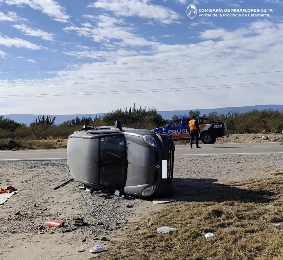 Por causas que se tratan de establecer, perdió el control del rodado y volcó a un costado de la calzada. Producto del siniestro los ocupantes del vehículo resultaron lesionados y fueron asistidos por profesionales médicos de Nueva Coneta y del SAME, quienes los trasladaron a los Hospitales de Niños Eva Perón y San Juan Bautista de esta Ciudad Capital respectivamente.