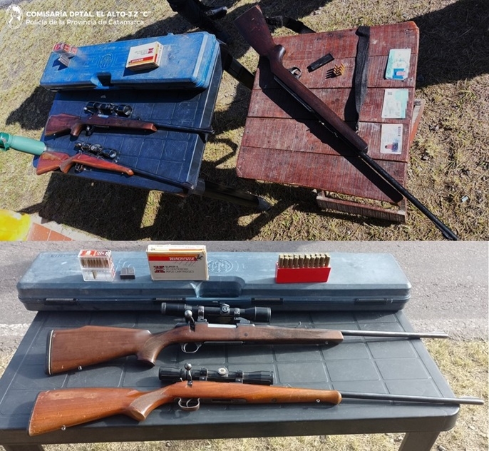Al inspeccionar los rodados, los policías incautaron tres rifles y tres cajas con 73 cartuchos, debido a que estas personas carecían de la documentación correspondiente, en virtud de lo cual se dio intervención a la Fiscalía de Instrucción en turno del Distrito Este, desde donde se impartieron las medidas a adoptar.