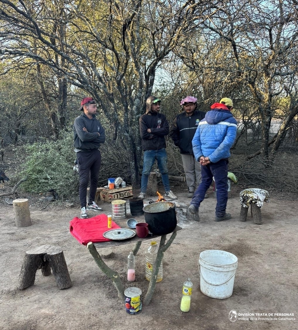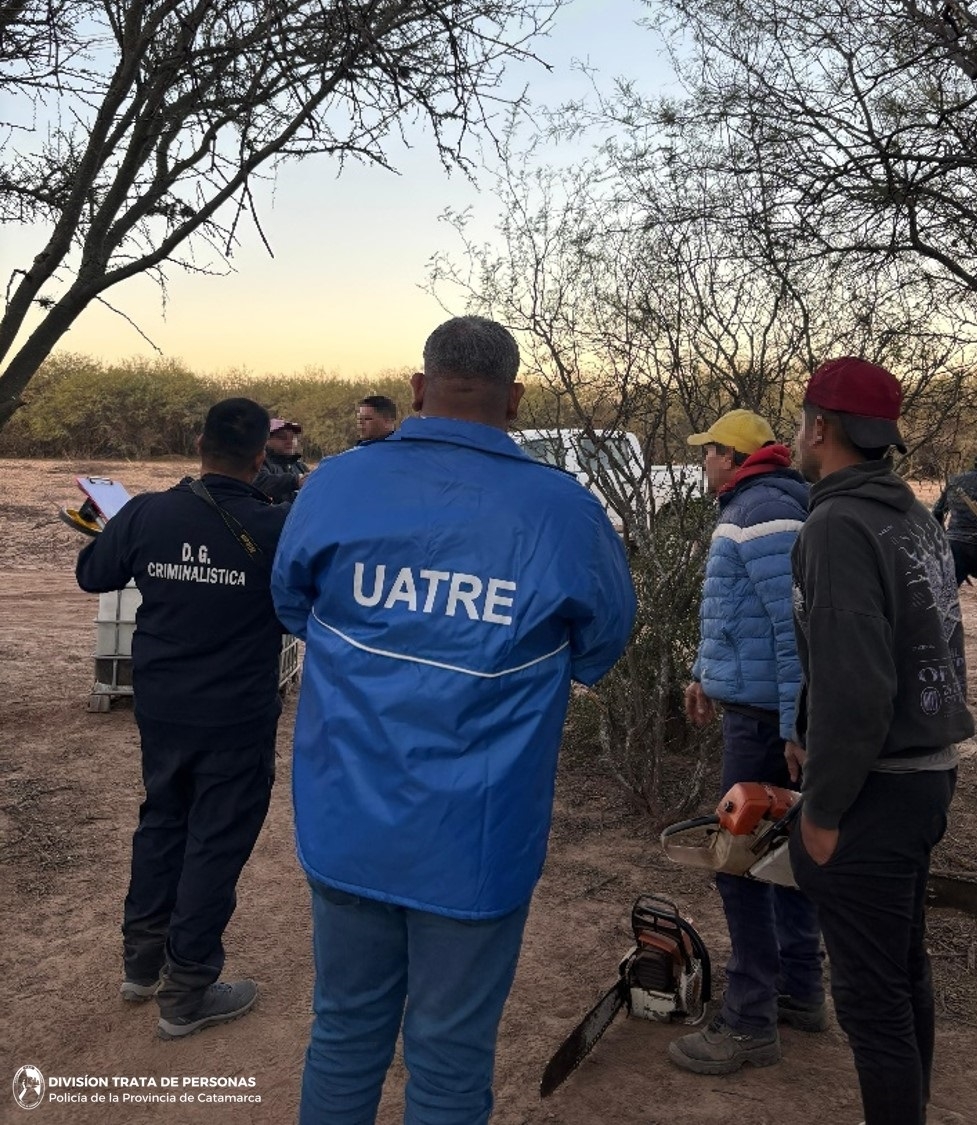 En el lugar, conjuntamente con sus pares de la División Criminalística de la Unidad Regional N° 2, y personal del RENATRE Catamarca y de la Delegación UATRE Catamarca, los policías procedieron al resguardo de tres personas del sexo masculino de 27, 29 y 53 años de edad, quienes se encontraban en extrema situación de vulnerabilidad, debido a la falta de los servicios básicos de luz eléctrica, gas y agua potable, residiendo desde hace 2 meses aproximadamente en un recinto construido con horcones y plástico, sin contar con sanitarios, por lo que les brindaron la contención correspondiente y labraron las actuaciones de rigor, bajo las directivas de la Justicia interviniente.