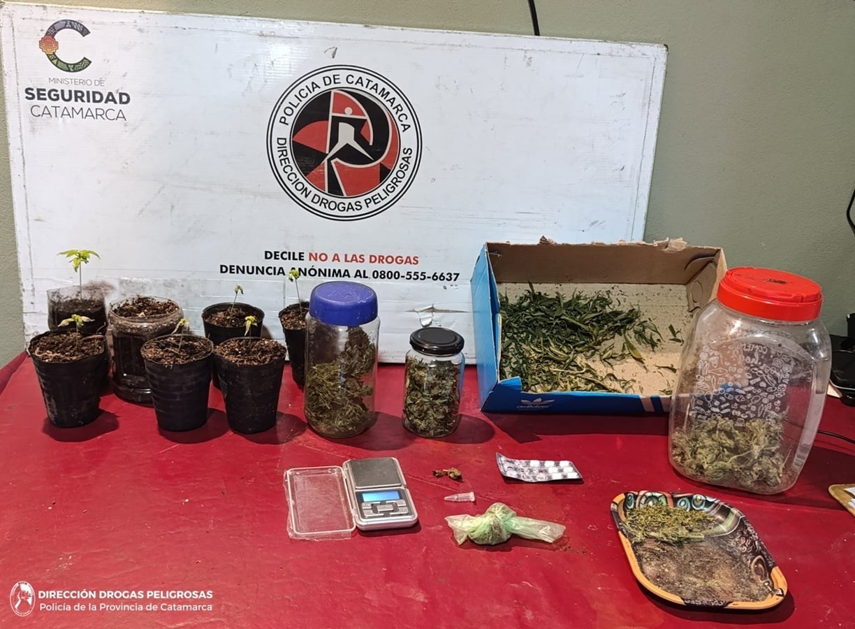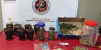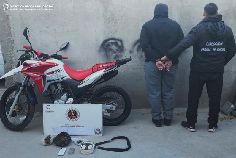 Al irrumpir en las viviendas, los policías secuestraron una sustancia herbácea compuesta por hojas, flores y tallos, que al ser sometida a la prueba de campo correspondiente arrojó resultado que se trataría de unos 420 Grs., de Marihuana, como así también hicieron propio con semillas de la variedad cannabis sativa, un blíster con siete comprimidos de Alprazolam 2 Mg., siete plantines de la variedad cannabis sativa, una balanza de precisión, una balanza digital, un teléfono celular iPhone 13 y una motocicleta Honda Rally 300 cc., de colores rojo y blanco.