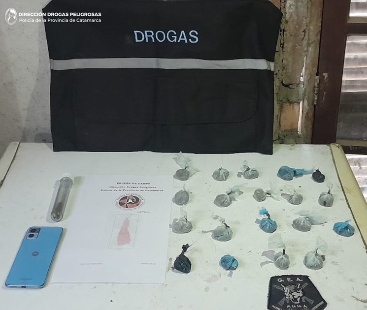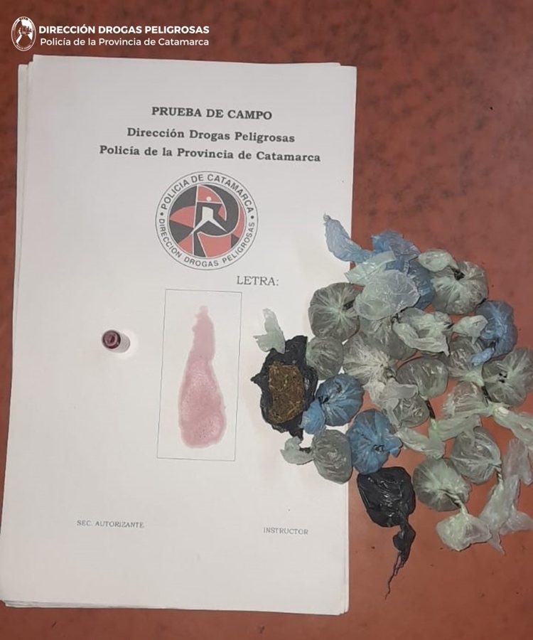 Al irrumpir en el inmueble, los policías secuestraron veinte envoltorios de plástico con una sustancia herbácea que, al ser sometida a la prueba de campo correspondiente, arrojó como resultado que se trataría de unos 70 gramos de cogollos de Marihuana, que quedaron en calidad de secuestro, al igual que 78 semillas de la variedad Cannabis Sativa.