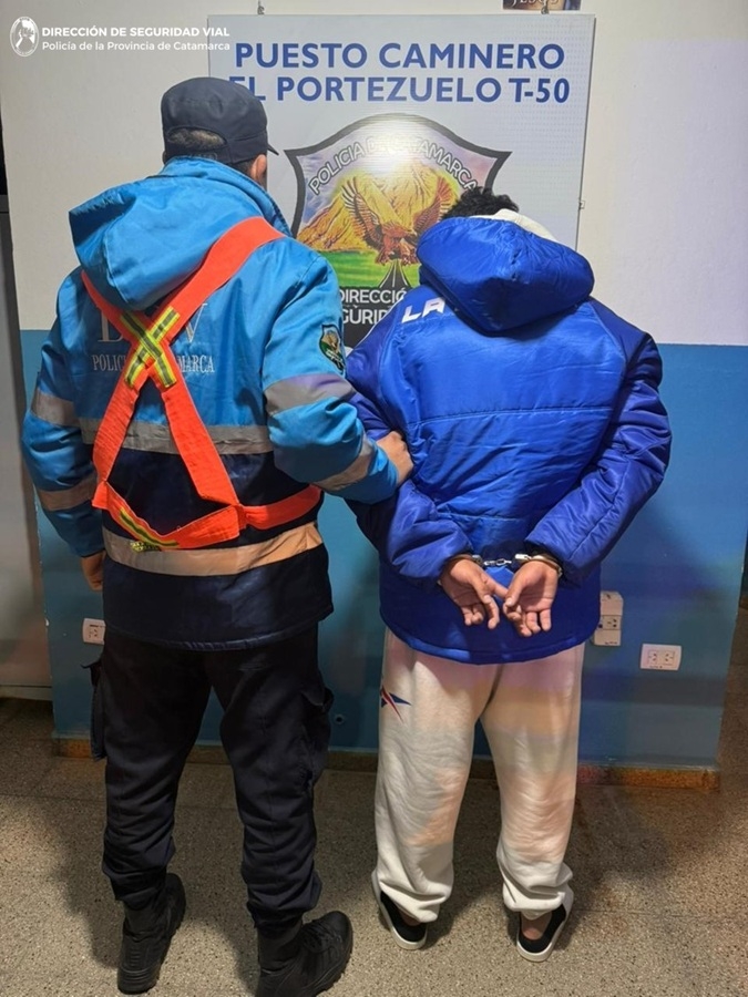 Hoy, a las 04:25, mientras personal de la Dirección de Seguridad Vial de la Policía de la Provincia realizaba un operativo de control vehicular e identificación de personas en el Puesto Caminero El Portezuelo, ubicado en la Ruta Nacional N°38, controló un Volkswagen Polo, en el que circulaban dos hombres.