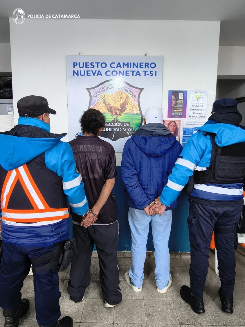 Hoy, mientras numerarios de la Dirección de Seguridad Vial de la Policía de la Provincia, con colaboración de sus pares de la División Investigaciones y de la Dirección Drogas Peligrosas, realizaban control vehicular en el puesto caminero de Nueva Coneta, ubicado en la Ruta Nacional N° 38, de esa localidad del Departamento Capayán, controlaron una combi y un colectivo, ambos marca Mercedes Benz, provenientes de las Provincias de San Juan y Mendoza respectivamente.