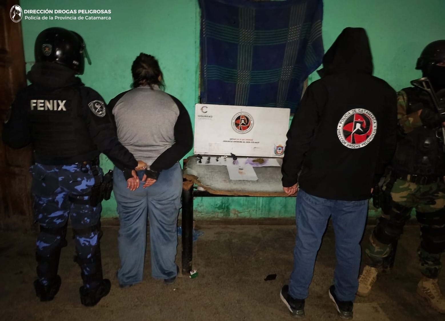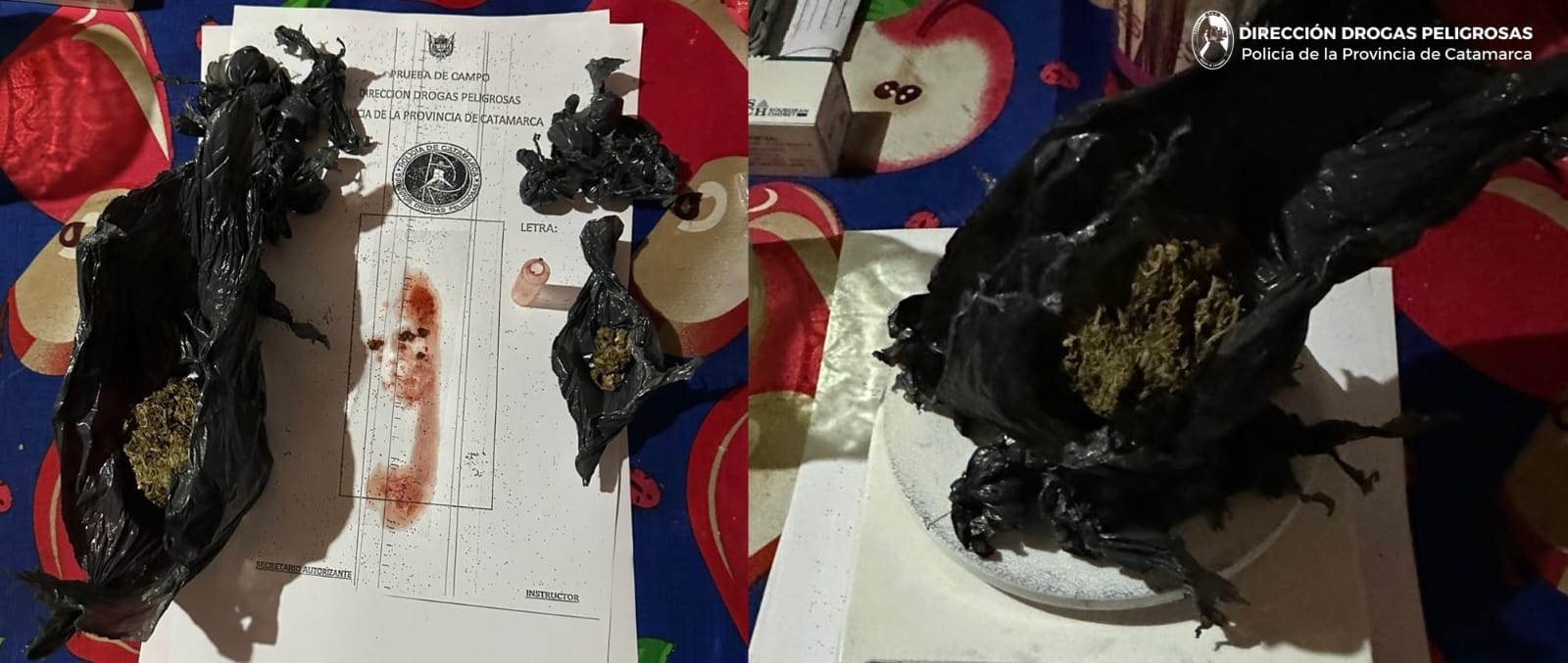 Al irrumpir en los inmuebles y con colaboración de sus pares de la Dirección de Operaciones Especiales Kuntur y del Cuerpo Guardia Infantería Femenino (FENIX), los investigadores secuestraron treinta y ocho (38) envoltorios de plástico con sustancias tipo polvo de color blanco y herbácea, que al ser sometidos a la prueba de campo correspondiente, arrojó como resultado que se tratarían de Cocaína y 89 Gr. de Marihuana, como así también incautaron ansiolíticos, tres (03) teléfonos celulares, una (01) balanza digital tipo gramera de precisión y la suma de quinientos cuarenta y cinco mil pesos ($545.000) en efectivo.
