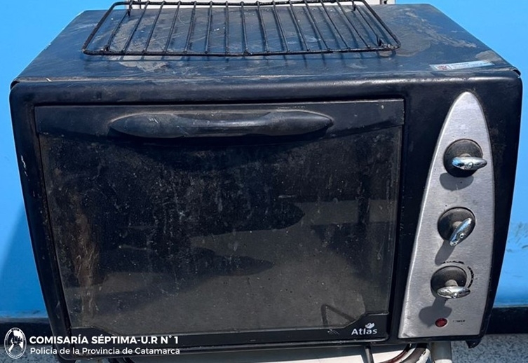 Hoy, a las 00:10, tras recorridos preventivos, en la intersección de la calle Jorge “Negro” Herrera y avenida 2 de Abril, efectivos de la Comisaría Séptima aprehendieron a una persona de apellido Caballero (26), quien momentos antes habría sustraído de un domicilio ubicado en la Manzana N° 51 del barrio Eva Perón, un horno eléctrico, que fue recuperado y quedó en calidad de secuestro.