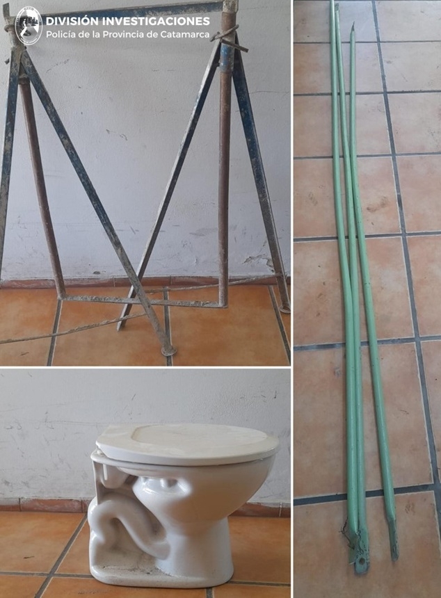 En los inmuebles, bajo las directivas de la Fiscalía de Instrucción N° 1, los policías recuperaron 12 soportes de andamio, una máquina hormigonera, dos bolsas de cemento, dos palas de punta cabo largo, una picota, un andamio de hierro y un inodoro con su respectiva tapa, que quedaron en calidad de secuestro a disposición de la Justicia interviniente, mientras que los moradores fueron supeditados a la prosecución de la causa.