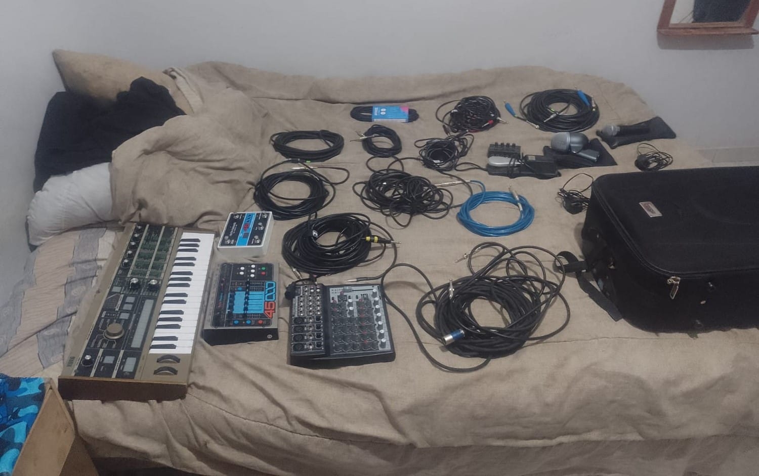 En dicho lugar y bajo las directivas de la Fiscalía de Instrucción de la Cuarta Nominación, los investigadores lograron recuperar un (01) teclado Microkorg MK1 rígido, una (01) valija semirrígida, tres (02) pedales marca Electro-Harmonix con sus respectivos transformadores de corriente, un (01) pedal de Sustain Kurzweil, una (01) consola mixer marca Behringer Xenyx 1202, tres (03) cables canon, ocho (08) cables plug TRS, dos (02) micrófonos Shure SM58 y un (01) micrófono marca Shure Beta, que quedaron en calidad de secuestro a disposición de la Justicia interviniente, desde donde se impartieron las medidas a seguir.
