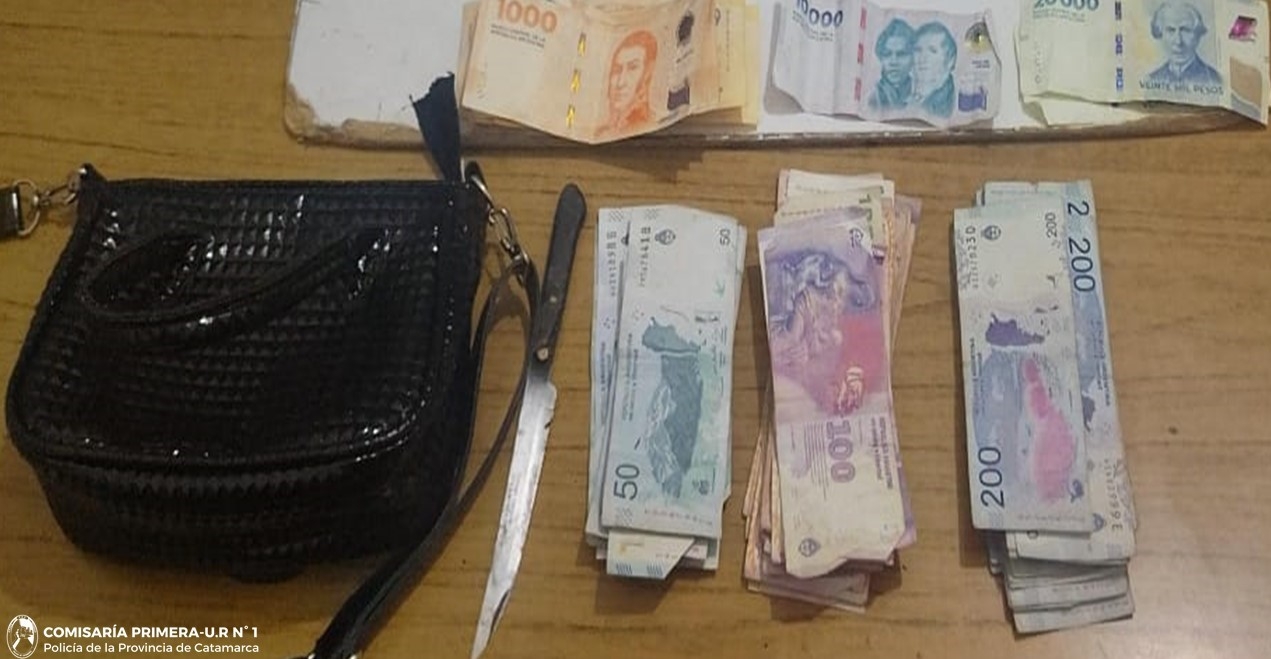 De inmediato y con las características aportadas, los policías realizaron recorridos por la zona y en la intersección de las calles Zurita y Tucumán, aprehendieron a la supuesta autora de apellido Guerrero (23), como así también recuperaron la suma de setenta mil cuatrocientos cincuenta pesos ($70.450) en efectivo, que quedaron en calidad de secuestro, al igual que una (01) cartera y un cuchillo tipo tramontina.