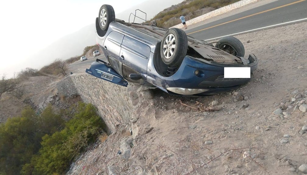 Según informó Canal 4 de Santa María, un auto Peugeot de color azul conducido por un hombre perdió el control y quedó a metros de una alcantarilla.